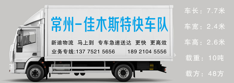 | 常州到佳木斯貨車:7.7米長×2.4米寬×2.6米高 | 常州到佳木斯7.7米貨車載重:10T /方數(shù):≈48方 | 常州到佳木斯專車運輸業(yè)務(wù):13775215656 |