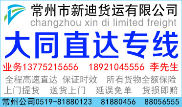 常州新迪物流提供常州到山西大同特快班車服務,是目前常州物流市場上時效最快的門到門整車運輸服務,以優(yōu)異的價格,確保您的貨物安全、快速的送達目的地。同時,為了滿足客戶的多樣化需求,也靈活搭配回程車運輸、順風車拼車、零擔運輸?shù)榷喾N運輸形式,盡可能的在滿足客戶時效、安全性要求的同時,為客戶節(jié)省成本。