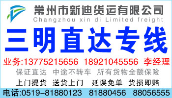 常州新迪物流提供常州到三明特快班車(chē)服務(wù),是目前常州物流市場(chǎng)上時(shí)效最快的門(mén)到門(mén)整車(chē)運(yùn)輸服務(wù),以?xún)?yōu)異的價(jià)格,確保您的貨物安全、快速的送達(dá)目的地。同時(shí),為了滿(mǎn)足客戶(hù)的多樣化需求,也靈活搭配回程車(chē)運(yùn)輸、順風(fēng)車(chē)拼車(chē)、零擔(dān)運(yùn)輸?shù)榷喾N運(yùn)輸形式,盡可能的在滿(mǎn)足客戶(hù)時(shí)效、安全性要求的同時(shí),為客戶(hù)節(jié)省成本。