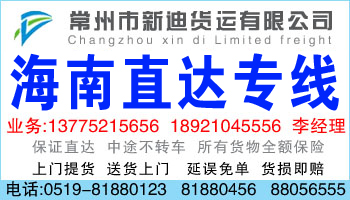 常州到海南貨運(yùn)公司物流運(yùn)營部,致力于提供自身最具優(yōu)勢的常州到海南運(yùn)輸資源,致力于提供最優(yōu)質(zhì)的上常州到海南物流服務(wù),每一次的合作,新迪物流都要站在客戶的角度綜合考慮時(shí)效、安全性、價(jià)格,為客戶選擇合適、及時(shí)、便宜的常州到海南物流運(yùn)輸方案,讓客戶托運(yùn)的貨物安全、快捷,準(zhǔn)時(shí)的送到收貨人手中,使客戶真正享受省錢、省事、省心、且有保障的常州到海南貨物運(yùn)輸服務(wù)。